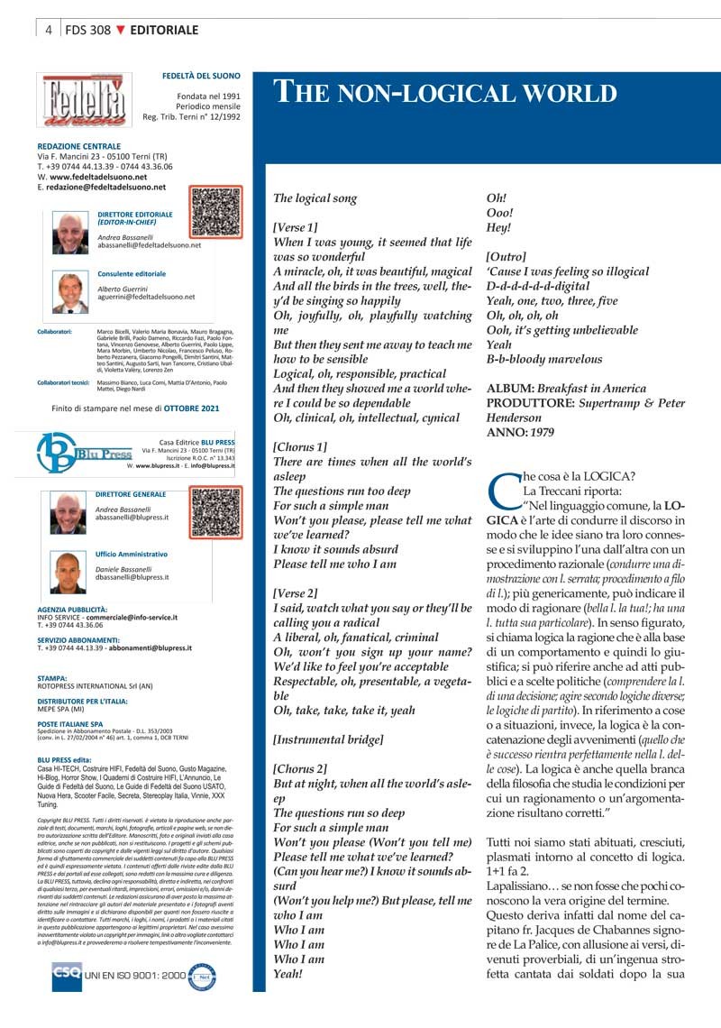 FEDELTÀ DEL SUONO #308 – OTTOBRE 2021 – THE NON-LOGICAL WORLD