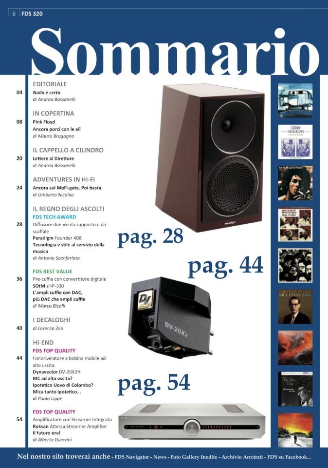 Prima di salutarvi, non posso che invitarvi nuovamente a SOSTENERCI sottoscrivendo l’abbonamento a FEDELTÀ DEL SUONO oppure a rivolgervi, come avete sempre fatto, al VOSTRO EDICOLANTE DI FIDUCIA che continuerà a fornirvi la VOSTRA COPIA DELLA RIVISTA! Se, per qualsiasi motivo, non dovesse più averla, potete chiedere al VOSTRO EDICOLANTE di farsela rimandare oppure POTETE SCRIVERE A: