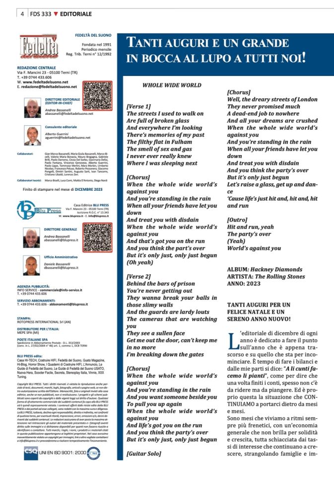 FEDELTÀ DEL SUONO #333 – DICEMBRE 2023 – TANTI AUGURI E UN GRANDE IN BOCCA AL LUPO A TUTTI NOI!